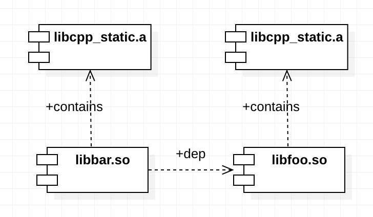 libfoo用到c++_static;libbar也用到c++_static;libbar依赖于libfoo。