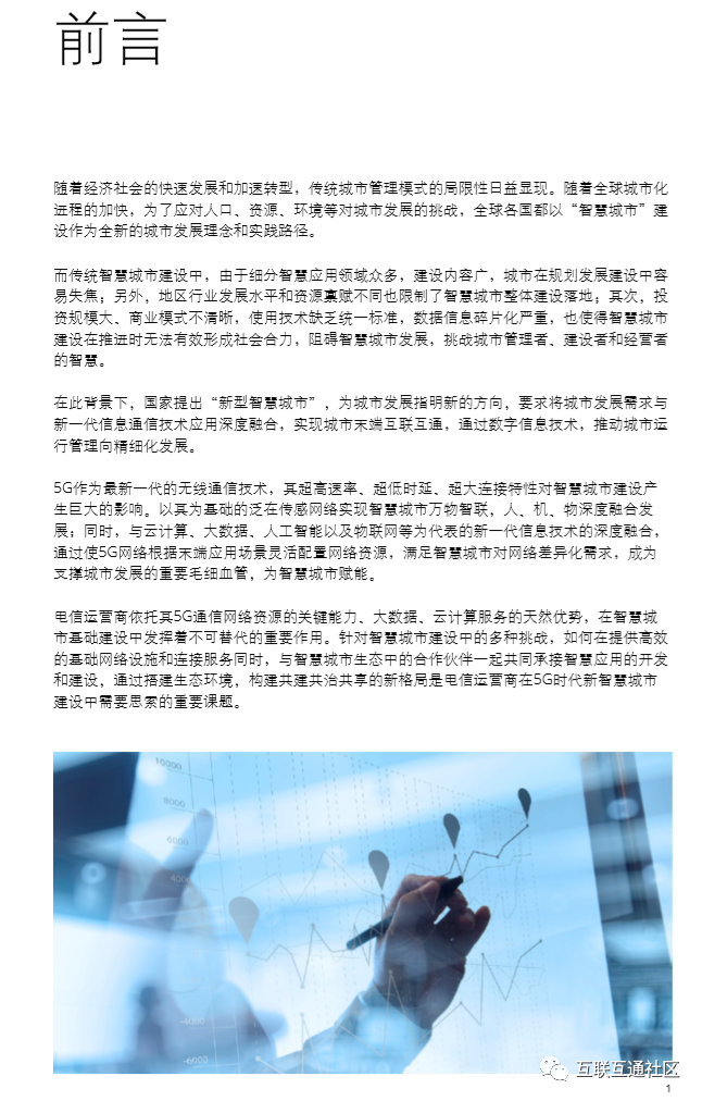 关注公众号【互联互通社区】,回复【5G赋能智慧城市白皮书】获取全部内容