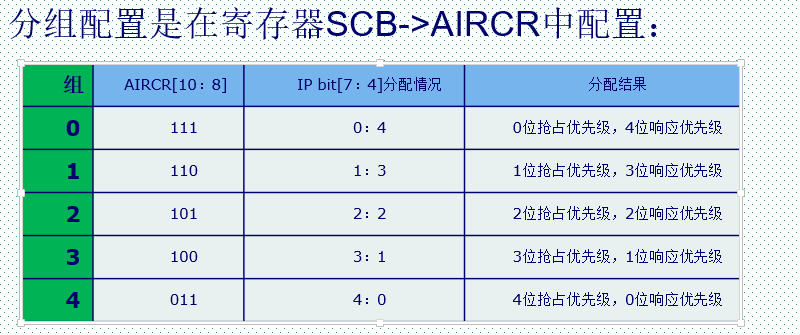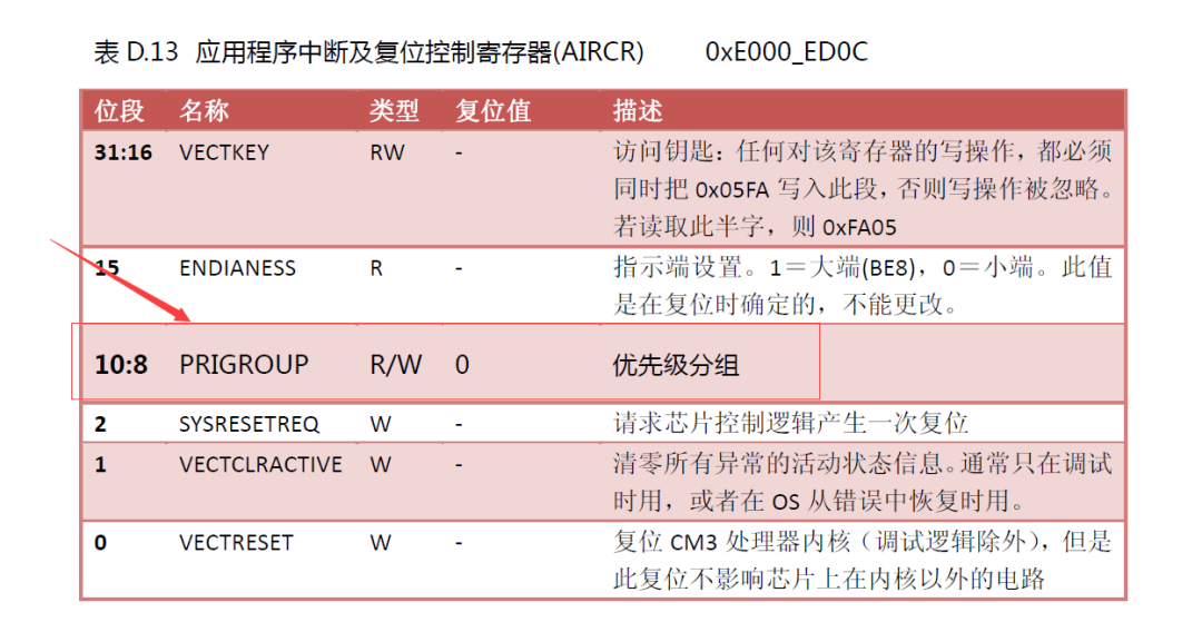 找到AIRCR寄存器,其中8到10位为优先级分组