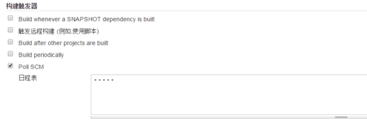 这里我们选择poll轮询每隔1分钟去检测git仓库代码库版本,如果有更改则立刻构建,这里大家可以根据自己团队实际情况去制定,当然还有另外一个插件gitlab-hook可以主动去通知jenkins构建,不过插件所占内存比较大,需要增大tomcat虚拟机内存配置,不然会内存溢出,个人觉得如果一个团队人很多的话,选择poll更适合并且时间间隔设置长一些,避免频繁构建,gitlab-hook 适合人很少甚至一个人的情况。